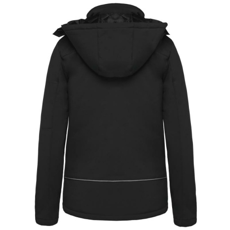 Gewatteerde softshell damesparka met capuchon. Binnenlaag van microfleece voor maximale warmte.