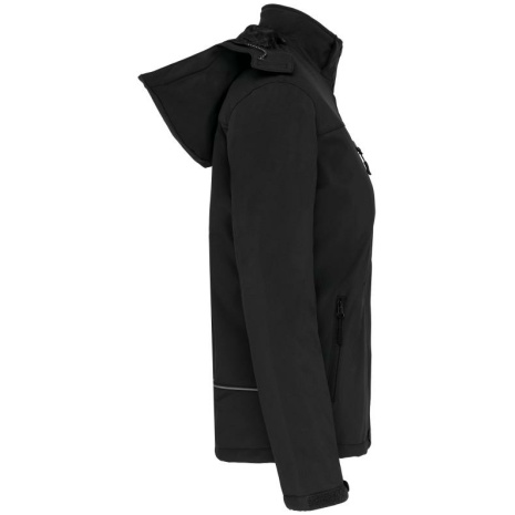 Gewatteerde softshell damesparka met capuchon Binnenlaag van microfleece voor maximale warmte. Ademend membraan binnenin om droog te blijven. Softshell 3 lagen voor een ideale bescherming. 95% polyester / 5% elasthan. 3-laagse ademende stof 3000 g/m²/24 u en waterdicht 8000 mm. Buitenkant: 95% polyester / 5% elasthan. Tussenlaag: ademend membraan. Binnenlaag: microfleece. Gewatteerde voering van 100% polyester. Voorkant: 4 ritszakken (2 aan de zijkant, 1 op de mouw, 1 rechts op de borst). 2 binnenzakken met drukknoop. Afneembare capuchon met 3 gevoerde en gewatteerde panelen, regelbaar met stoppers. Met klittenband regelbare mouwuiteinden. 1 rits aan de linkerkant en 1 drukkersrits.