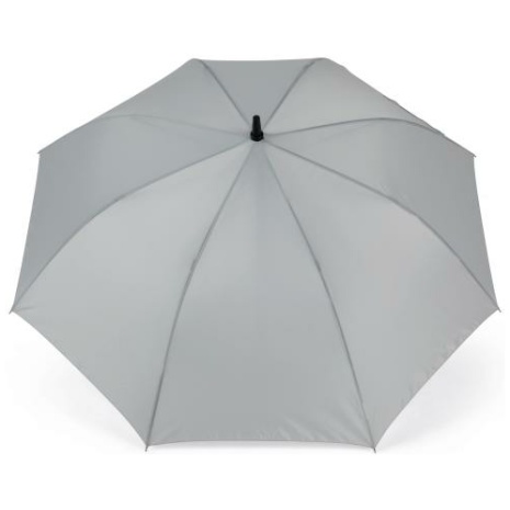 Grote Golfparaplu Breed scala aan kleuren. Heel gemakkelijk: gaat automatisch open. Sterke, ergonomische handgreep. Golfparaplu 26″ (66 cm) baleinlengte in 210T polyester. Automatische opening. Zwarte metalen stok 14mm dik. Zwart glasvezel frame. Metalen punten. et klittenbandsluiting. Golfhandvat van polycarbonaat gegomde afwerking.