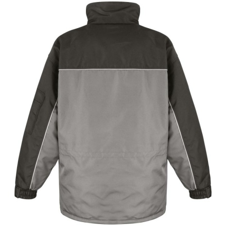 Heavy Duty Combo Coat Sterke, dikke en duurzame stof. Houdt de warmte vast. Reflecterende inzetsels om veilig te werken. Buitenkant: 600D heavy duty oxford Taslon met PU coating. Wattering: 100% polyester 160 gram. Binnenvoering: bovenkant 100% polyester fleece en onderkant 100% 190T nylon taffeta. Versterkte naden. Kraag met fleece gevoerd. 3M™Scotchlite ™ reflecterende piping op de voor- en achterkant en op de mouwen. Volledige ritssluiting met stormoverslag met drukknopen. Lusjes voor headset. 2 opgezette zakken, 2 borstzakken met 3 penhouders en 2 sleutelringen (waarvan 1 veborgen) en GSM zak. 2 binnenzakken en een groot vak van mesh. Elastische mouwuiteinden en onderkant. Drukkersritsen.
