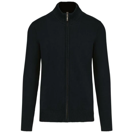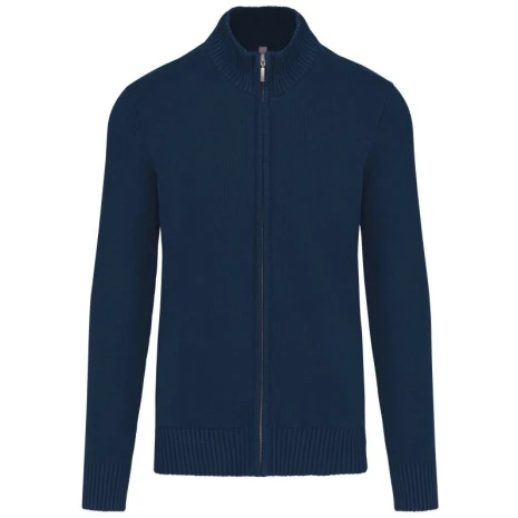 Heren cardigan met ritsย Dik en comfortabel. Fitted pasvorm voor een tijdloze, casual stijl. Past in de hippe, casual stijl van de mannelijke garderobe. 50% katoen / 50% acryl. Getailleerde snit. Opstaande 2-laagse kraag. Metaalkleurige ritssluiting. Nektape.