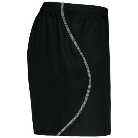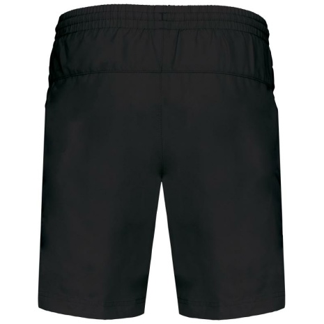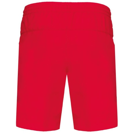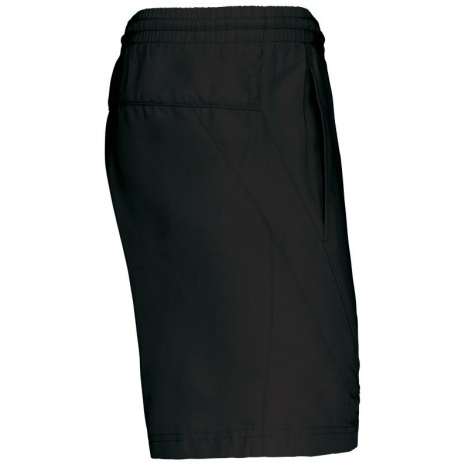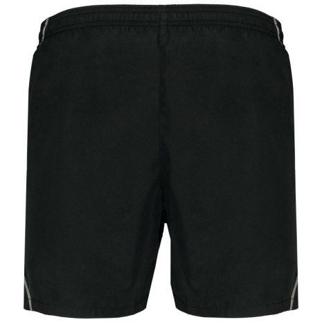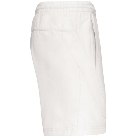 Heren sportshort Sneldrogend. 2 zijzakken. Blijft goed zitten dankzij de elastische tailleband met aanrijgkoordjes. 100% polyester. Sneldrogende stof. 2 zijzakken. Elastisch verstelbare taille met aanrijgkoord. Netvoering aan de binnenkant. Mesh broekje. Inzetstuk aan de zijkant.