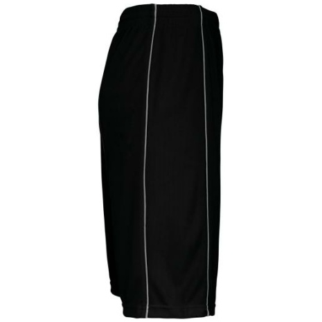 Herenbasketbal short Blijft goed zitten dankzij de elastische tailleband met aanrijgkoordjes. Afwerking met dubbel stiksel onderaan voor een kwaliteitsvolle afwerking. 100% polyester. Elastische tailleband met aanrijgkoord. Bies in contrastkleur op de naden op de voor-en achterkant. Afwerking met dubbele stiksels aan de onderkant.