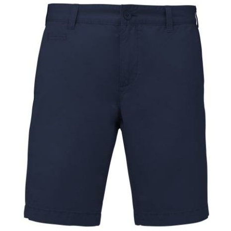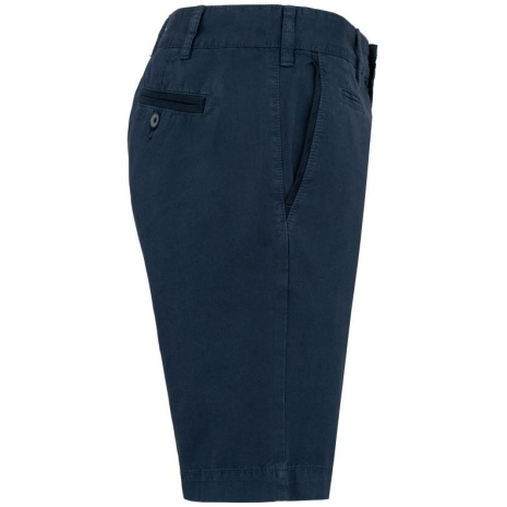Herenbermuda met verwassen look Heel comfortabele en modieuze snit. Unieke afwerking met een verouderd effect. Gewassen twillstof met een grote wasweerstand. 100% katoen. Verwassen twillstof voor een optimaal comfort. Canvasstof voor de zakafwerking. 2 Italiaanse zakken aan de voorkant, waarvan één met 1 muntzak, 1 ticketzak. 2 omzoomde achterzakken met knoop en verstevigend stiksel. Ritssluiting met knoop. Binnenriem en zak van fantasiestof. Riem met lussen.