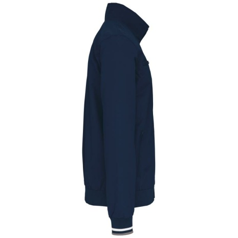 Herenjas Combineert de stijl van de Amerikaanse bomber met die van de gestructureerde teddy. Hippe, casual look, ideaal voor iedere dag. Tweekleurig, modieus detail aan de kraag. 100% polyamide ottomaans taslon. Netvoering 100% polyester. Duurzame stof. 2 voorzakken met rits. 1 borstzak met rits. 1 binnenzak. Binnenkant kraag van in rib met geconstrasteerde strepen. Meshvoering met drukkersrits. Onderkant in rib. Mouwuiteinden in rib met gecontrasteerde strepen.
