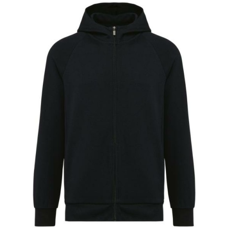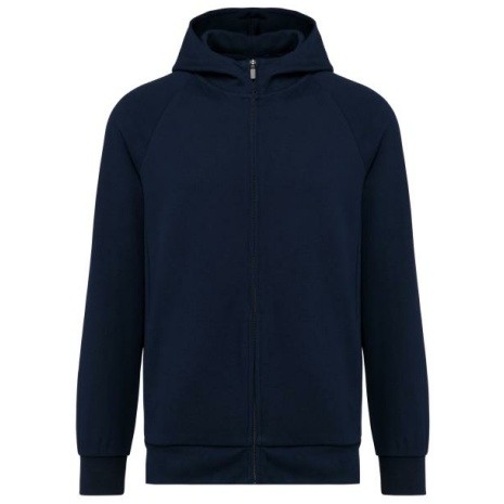Herenjasje met rits en capuchon Jasje met een moderne snit van uitstekende kwaliteit. De capuchon heeft dezelfde voering als het jasje. LSI-behandeling (Low Shrinkage Interlock) om krimpen te beperken. 70% katoen / 26% polyester / 4% elasthan. Gekamd katoen. Interlockstof. LSI-behandeling (Low Shrinkage Interlock). Capuchon met 2 panelen, gevoerd met dezelfde stof als de rest van het jasje, geen koordje. Stiksel in de kraag. Nektape aan de binnenkant van de halsopening. Ton-sur-ton nylon rits met metalen trekker en nektape aan de binnenkant. Raglanmouwen. 1×1 ribboord. 2 zakken in de naad van het inzetsel. Geen merklabel, maar enkel een maatlabel voor eenvoudige personalisatie.