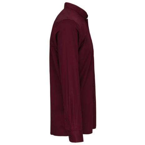 Herenoverhemd met “Mao” kraag lange mouwen Het overhemd voor professionals uit de horeca. Met een chique en moderne maokraag. Easy-care behandeling voor een gemakkelijk onderhoud. 65% polyester / 35% katoen popeline. Easy Care. Mao kraag zonder knopen. Knooplijst met toon op toon knopen. Borstzakje links met afgeronde hoeken. Verstelbare mouwuiteinden met afgeronde manchetten. 2 reserveknopen.