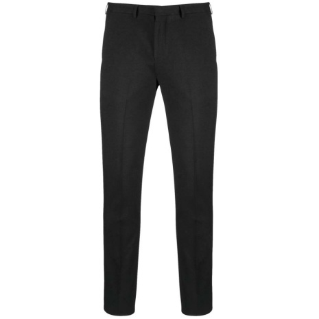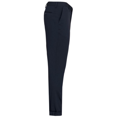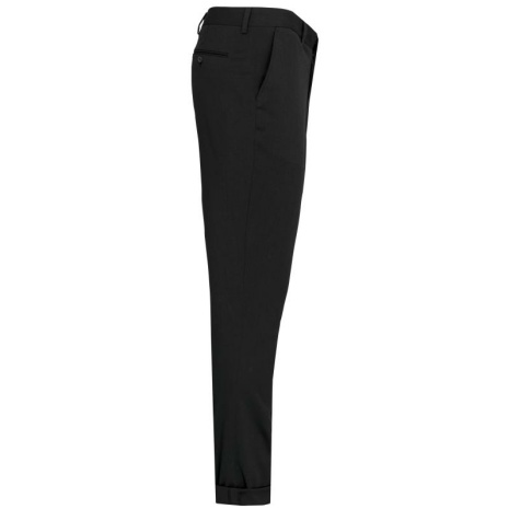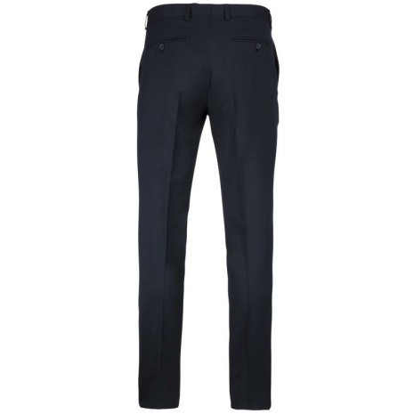 Herenpantalon Een onmisbaar, elegant stuk uit de professionele garderobe. Trendy, fitted pasvorm met discrete en verfijnde afwerkingen. Mantelpak om af te werken met kostuumjasje K6130. 64% polyester / 34% viscose / 2% elasthan. Broek met fitted pasvorm. 2 Italiaanse zakken aan de voorkant en 2 omzoomde achterzakken met knoop. Ritsgulp met haakje en knoop onder lijst. Riem met lussen. 1/2 broekspijp vooraan gevoerd. “Onafgewerkte” onderzijde om een perfect aangepaste zoom te kunnen maken.