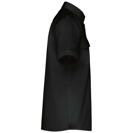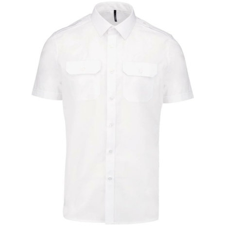Herenpilootoverhemd korte mouwen Elegante, professionele look. Easy-care behandeling voor een gemakkelijk onderhoud. Ideaal voor professioneel gebruik. 65% polyester / 35% popelinekatoen. Gemakkelijk in onderhoud (EasyCare-behandeling). Toon op toon knopen. 2 borstzakken met klep, waarvan aan de linkerkant een met plaats voor een pen. Ruimteplooi op de achterkant. Knooplijst op de schouders om galons te bevestigen (epauletten niet meegeleverd). Afgewerkt met omslag aan de mouwuiteinden.