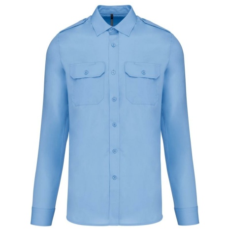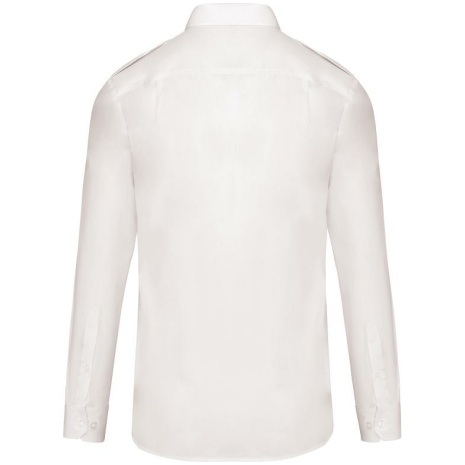 Herenpilootoverhemd lange mouwen Elegante, professionele look. Easy-care behandeling voor een gemakkelijk onderhoud. Ideaal voor professioneel gebruik. 65% polyester / 35% popelinekatoen. Gemakkelijk in onderhoud (EasyCare-behandeling). Toon-op-toon knopen. 2 borstzakken met klep, waarvan aan de linkerkant een met plaats voor een pen. Ruimteplooi op de achterkant. Knooplijst op de schouders om galons te bevestigen (epauletten niet meegeleverd). Regelbare knoopmanchetten.