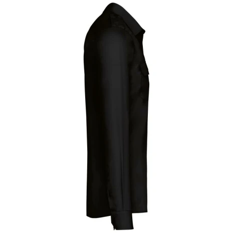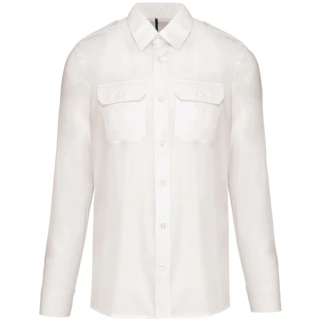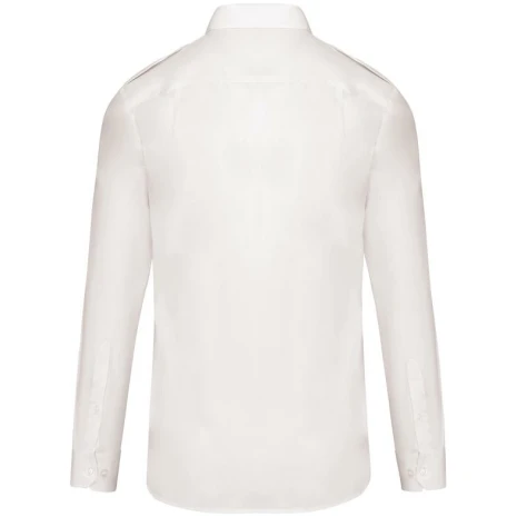Herenpilootoverhemd lange mouwen Elegante, professionele look. Easy-care behandeling voor een gemakkelijk onderhoud. Ideaal voor professioneel gebruik. 65% polyester / 35% popelinekatoen. Gemakkelijk in onderhoud (EasyCare-behandeling). Toon-op-toon knopen. 2 borstzakken met klep, waarvan aan de linkerkant een met plaats voor een pen. Ruimteplooi op de achterkant. Knooplijst op de schouders om galons te bevestigen (epauletten niet meegeleverd). Regelbare knoopmanchetten.