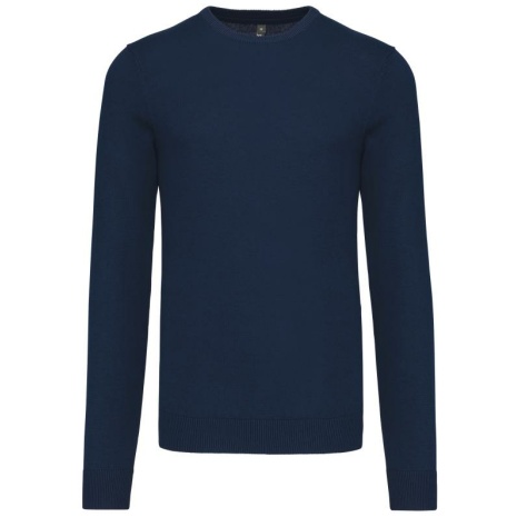 Herenpullover met ronde hals Voor een trendy en elegante stijl. Fitted pasvorm, valt perfect. Lichte en comfortabele textuur. 50% katoen / 50% acryl. Getailleerde snit. 2-laagse kraag in rib. Nektape.