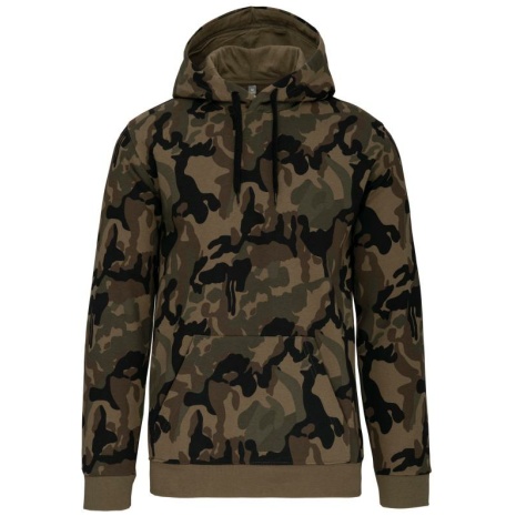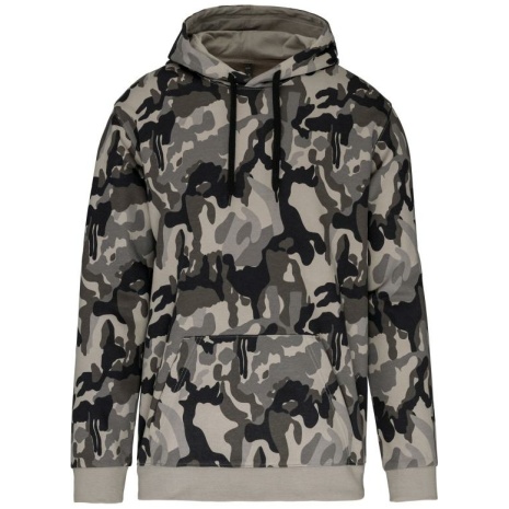 Herensweater met capuchon Casual-sportieve look. Geborsteld fleece aan de binnenkant, voor een optimaal comfort. Casual en ideaal voor dagelijks gebruik. 80% katoen / 20% polyester (Olive & Grey camouflage 70% katoen /30% polyester). Geborsteld fleece aan de binnenkant. Ingezette mouwen. Gevoerde capuchon met toon op toon aanrijgkoordjes. Kangoeroezakken. Ribboord aan mouwuiteinden en aan de onderkant.