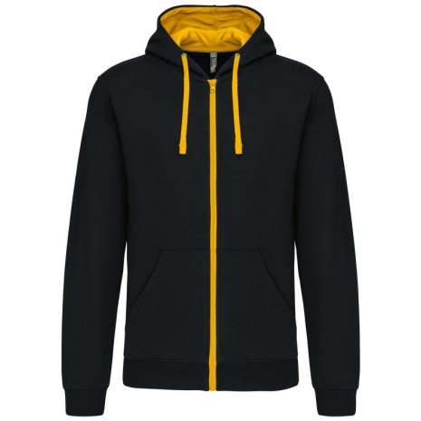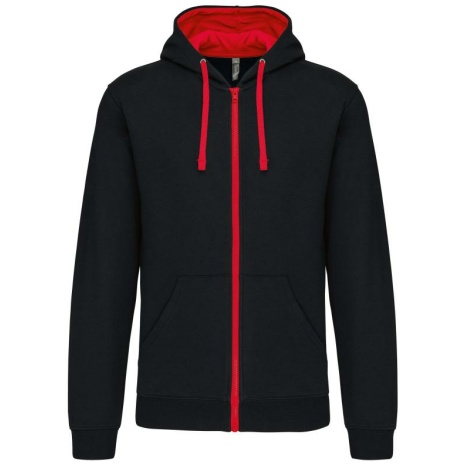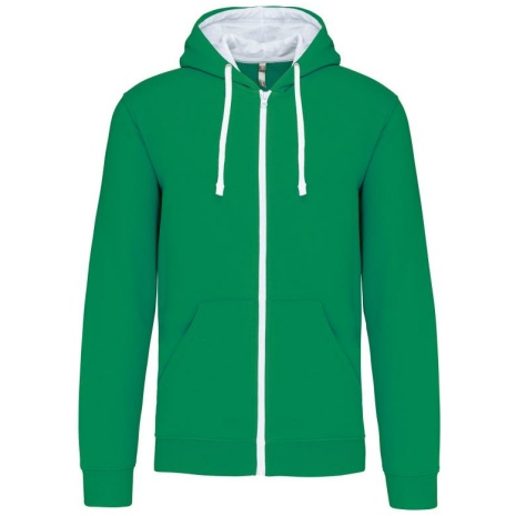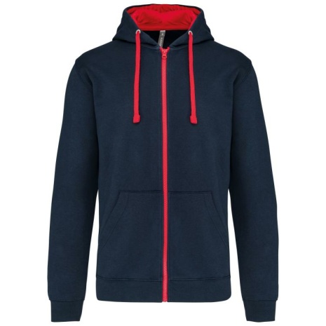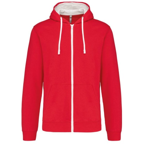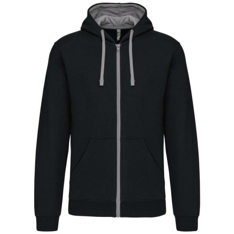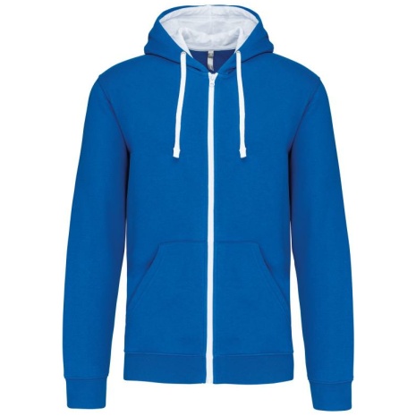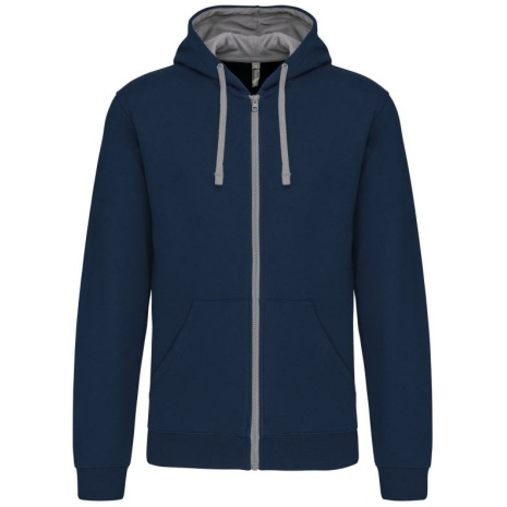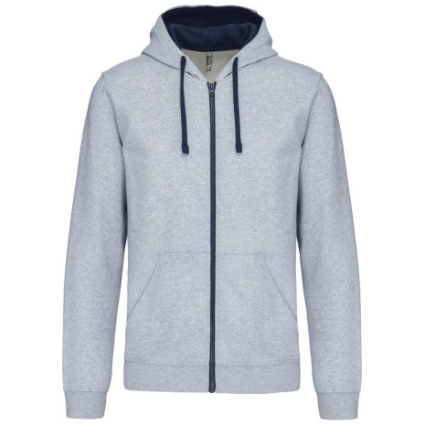 Herensweater met rits en capuchon in contrasterende kleur Tijdloos en heel comfortabel. Geborsteld fleece aan de binnenkant, voor een optimaal comfort. Snoeropening voor headset in de kangoeroezak en halsopening. 80% katoen / 20% polyester (Oxford Grey: 76% gekamd katoen / 21% polyester / 3% viscose). Geborsteld fleece aan de binnenkant. Gaatje voor draadje in de kangoeroezak en lusje aan de kraag voor oortjes. Ribboord aan mouwuiteinden en onderkant kledingstuk. Gevoerde capuchon in contrasterende kleur met aanrijgkoordjes. Rits in contrasterende kleur.