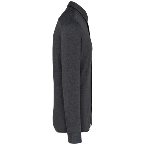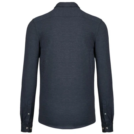Jacquard overhemd lange mouwenย De elegantie van een overhemd, het comfort van een polo. Comfortabele en zachte stof. Moderne, trendy look. 68% katoen / 32% polyester. Jacquardtricot. Kraagstaander van contrasterend suรจdine. Moderne look. Comfortabele en zachte stof. Klassieke knooplijst met knoop in imitatieparelmoer. Regelbare manchetten met knopen in imitatieparelmoer. Afgeronde boord aan de onderkant.