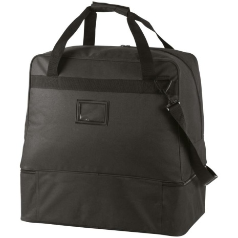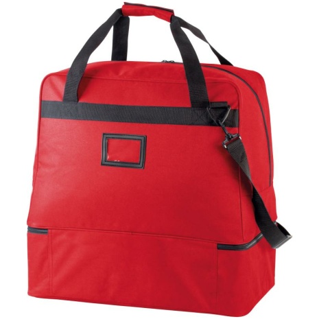 JUNIOR’ model / 60 liter Afneembare harde bodem. Ritszak op de voorkant voor eenvoudige personalisatie. Afneembare schouderband en kaarthouder. Polyester 600D. 60 liter inhoud. Verstevigde bodem in polypropylene met voetjes in plastic. Voorzak met rits om de personalisatie te vereenvoudigen. Kaarthouder. Afneembare schouderband met patch in silicone.