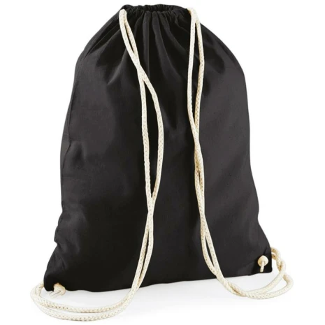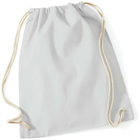 Katoenen gymtas Glad oppervlak, ideaal voor zeefdruk. Dik en sterk katoen. Handige sluiting. 100% Katoen, Sluiting met trekkoord, Het “natuurlijke” alternatief voor polyester gymtassen