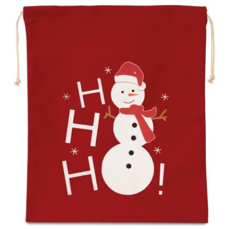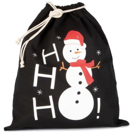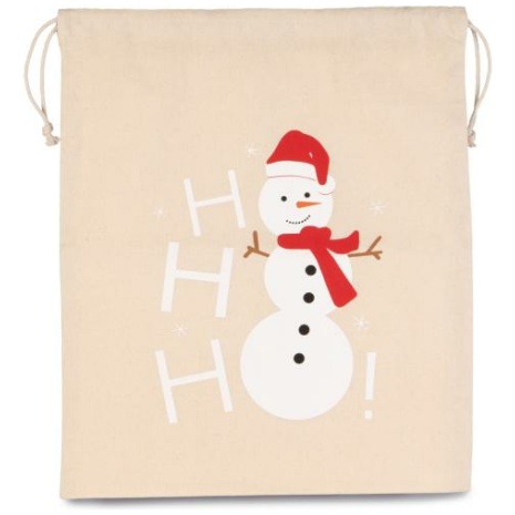 Katoenen koordjestas met sneeuwmanmotief Sterk en gemakkelijk te personaliseren. Originele en speelse sneeuwmanprint. Mooie en handige koordjessluiting van touw. 220 g/m² 100% katoen. Katoenen tas met trekkoord en gedrukte sneeuwpop. 38x45cm.