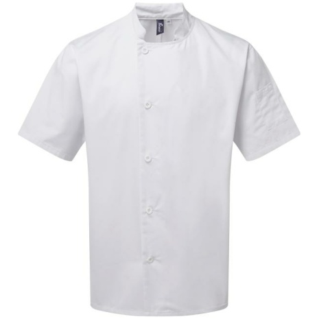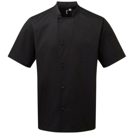 Koksjasje met korte mouwen “Essential” Sterke knopen van hars. Dubbele pennenzak op de linkermouw. 65% polyester / 35% twillkatoen. Sluit met vijf knopen van superieur hars. Zak voor twee pennen op de linkermouw. Maokraag. Industrieel wassen op 85 °C. Thuis wassen op 60 °C.