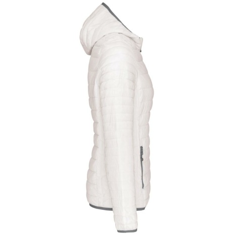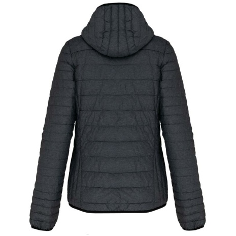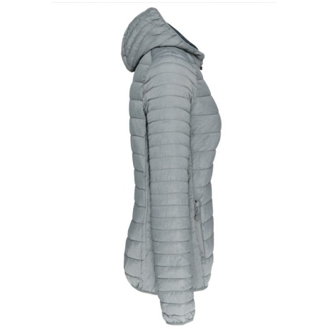 Ladies’ lightweight hooded padded jacket Handig, warm en heel licht. Sterk, soepel en onderhoudsvriendelijk materiaal. Compact op te bergen in zijn tas. 100% polyamide (Marl Silver 100% polyester, Marl Dark Grey: 70% polyamide/30% polyester). Binnenvoering van polyester. Warm en ultralicht. Compact op te bergen in zakje. 2 ritszakken aan voorzijde. Capuchon en binnenkant in contrastkleur: Convoy Grey voor Black, Red, Marl Dark Grey et Marl Silver; Navy voor Light Royal Blue; Black; Forest Green. Toon-op-toon interieur: Navy voor Navy; Wit voor Wit.