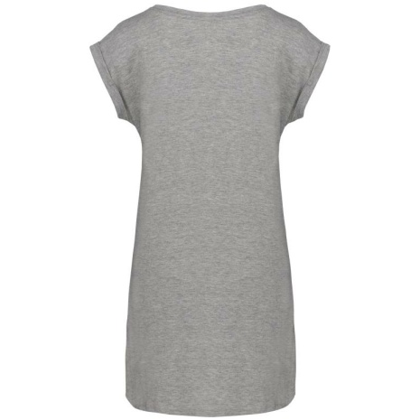 Lang dames-t-shirt Het ideale lange T-shirt met een soepel vallende pasvorm. Cosy en casual. Met details van een klassiek T-shirt, met een ronde halsopening. Collectie Lounge. NO LABEL. 100% gekamd jerseykatoen (Light Grey Heather : 90% katoen / 10% viscose). Comfortabele snit. Brede halsopening met nektape en mouwopeningen afgewerkt met omslagen. Afgerond en dubbel stiksel onderaan. Geen merklabel in de kraag, maar enkel een maatlabel voor eenvoudige personalisatie.