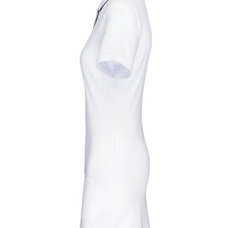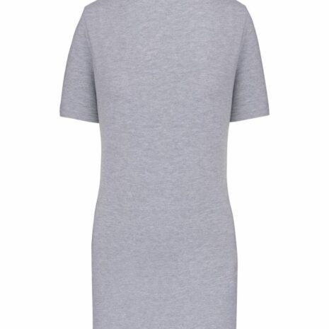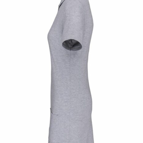 Lange damespolo korte mouwen 2 opgezette zakken onderaan aan de voorkant. Kan worden gewassen op 60 °C. De binnenkant van de knooplijst en de kraag zijn contrasterend. Effen kleuren: 95% katoen / 5% elasthan. Kleur Oxford Grey: 85% katoen / 12% viscose/ 3% elasthan. Piquétricot. Rechte snit. Wassen op 60 °C. Kraag in piquétricot. Contrasterende kraagstaander en knooplijst aan de binnenkant met 3 metalen knopen (1e knoopsgat horizontaal). Contrasterende nektape aan de binnenkant. 2 opgezette zakken aan de onderkant vooraan. 2 contrasterende zijsplitten voor meer comfort. Verstevigend stiksel op de hoeken van de zakken. Buisvormige zoomafwerking aan de mouwuiteinden en onderkant. Tear-away merklabel voor eenvoudige personalisatie.