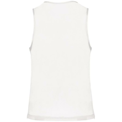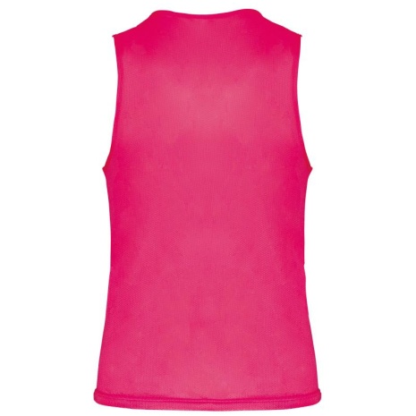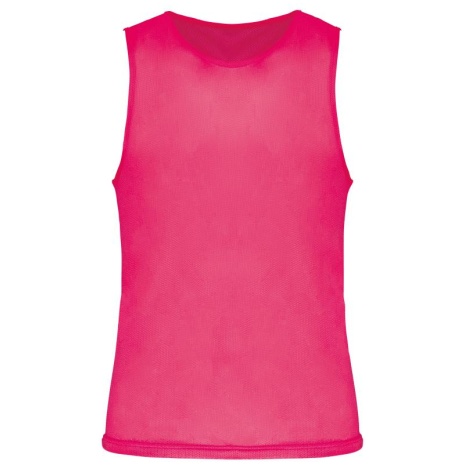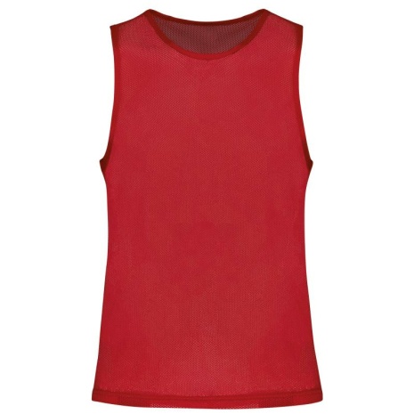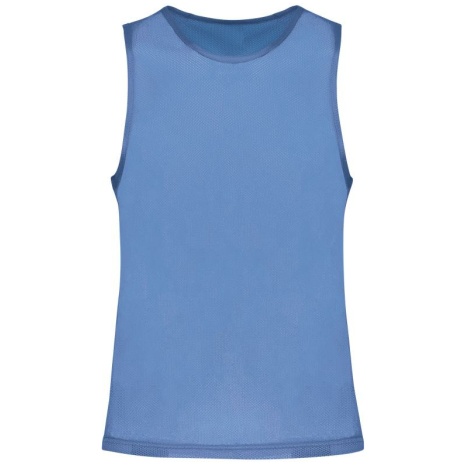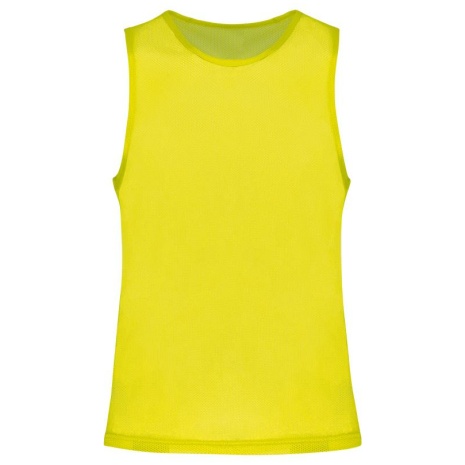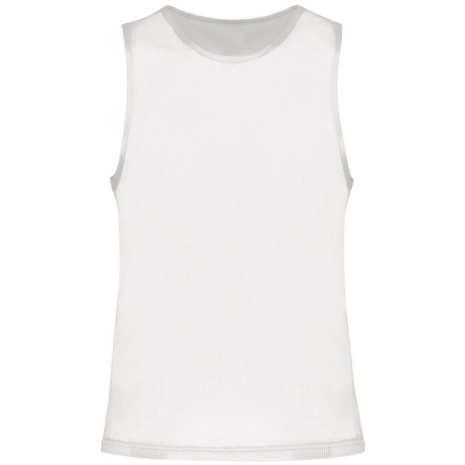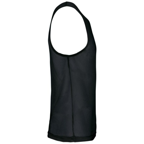 Licht trainingshesje multisport Opengewerkt tricot Dubbel stiksel 100% polyester. Mesh. Afgewerkt met dubbele stiksels onderaan.
