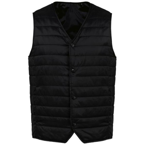 Lichte bodywarmer voor heren Heel verfijnd, wordt gemakkelijk onder een jasje gedragen. De Thinsulate-vezel houdt de warmte goed vast. 100% polyamide. Gevuld met Thinsulate®. Twee zijzakken. Sluit met ton-sur-ton drukknopen. Drukkersrits aan de linkerkant. Heel dun om onder een jasje te kunnen dragen. Geen merklabel, maar enkel een maatlabel voor eenvoudige personalisatie.