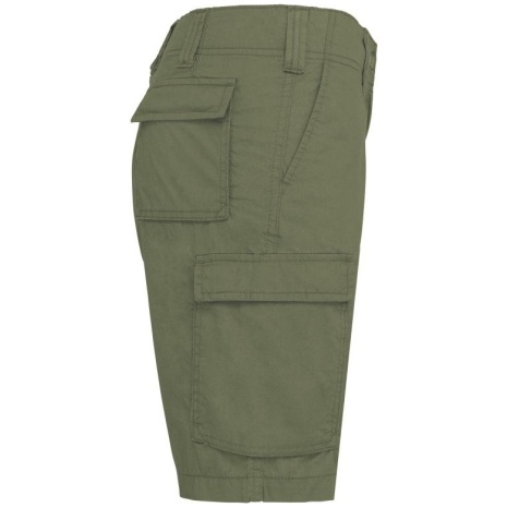 Lichte damesbermuda met diverse zakken Handig en heel functioneel. Verwassen stof van katoenpopeline voor een soepele look. Licht en comfortabel. Onmisbare workwear. 100% katoen. Verwassen popelinestof voor een soepele en comfortabele look. Contrasterende riembinnenzijde met aanrijgkoordjes. Ritssluiting met drukknoop. 2 Italiaanse zakken aan de voorkant. 2 plooizakken met klep en drukknoop aan de achterkant en zijkant.