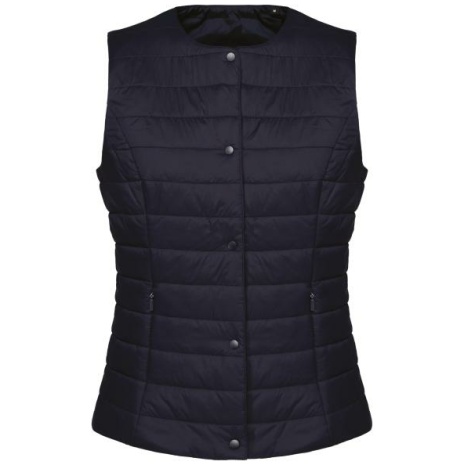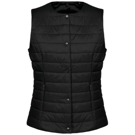 Lichte damesbodywarmer 100% polyamide. Fitted pasvorm. Gevuld met Thinsulate™. Inzetsel met 2 zijzakken en een verborgen rits. Sluit met ton-sur-ton drukknopen. Drukkersrits aan de binnenzijde links. Licht mouwloos gilet om het onder een jasje te kunnen dragen. Geen merklabel, maar enkel een maatlabel voor eenvoudige personalisatie.