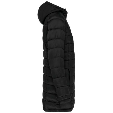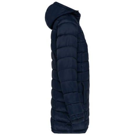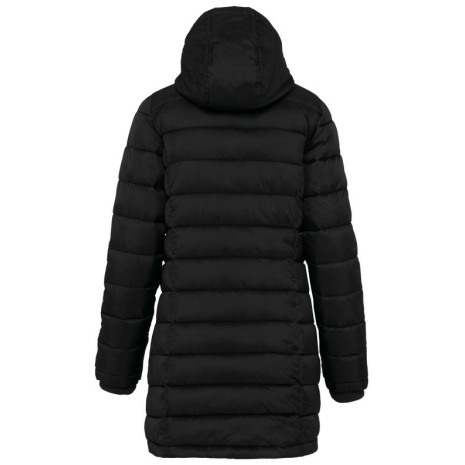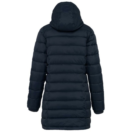 Lichte damesparka met capuchon Lange, getailleerde parka in een vrouwelijke, sportieve en casual stijl. Mouwuiteinden van ribboord om de koude uit de mouwen te houden. Warm, comfortabel en ultralicht. 100% polyamide. Binnenvoering van polyester. Warm en ultralicht. Getailleerde snit. 2 zakken aan de voorkant en 1 borstzak met rits en biesjes. Verborgen ritssluiting onder een drukknooplijst. Binnenkant kraag en mouwuiteinden in ribboord. Contrasterende binnenkant capuchon en lichaam : Convoy Grey voor Zwart. Effen binnenkant capuchon en lichaam: Navy voor Navy.