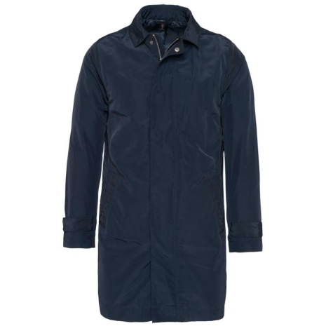 Lichte trenchcoat heren Lichte, modieuze en soepel vallende trenchcoat. Gemaakt uit tafzijde, voor een gladde en glanzende look. Blinde drukkersrits voor bedrukking links op de borst. 100% polyester. Waterafstotende tafstof 320T. Hemdskraag. Verborgen metalen ritssluiting onder een drukknooplijst. 2 fantasiezakken met drukknopen aan de zijkant. Volledig gevoerd aan de voorkant en half gevoerd aan de achterkant. 2 binnenzakken met knoop en 1 zak voor de gsm. Buitenkant kraagstaander en binnenzakken van gecoate fantasiestof. Drukknooplijst aan de mouwuiteinden. Verborgen drukkersrits.