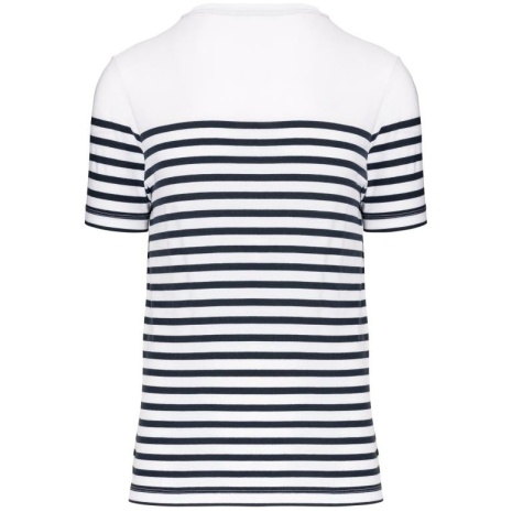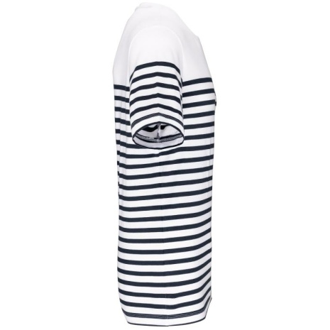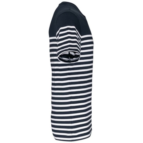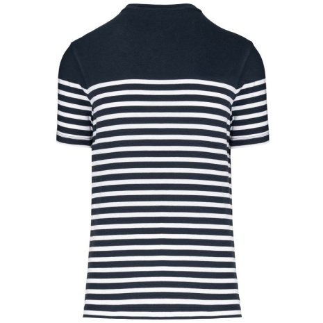 Marine-t-shirt ronde hals Bio heren No label: 100% personaliseerbaar naar uw merk Gekamd katoen: het kledingstuk gaat lang mee Enzymgewassen: zachte en comfortabele stof. 100% katoen. Dit T-shirt werd gemaakt van 100% biologisch gekamd katoen. Rechte snit. Enzymgewassen. Ronde halsopening met 1×1 ribboord. Gebreide strepen. Nektape. Dubbel stiksel aan mouwuiteinden en onderkant. Geen merklabel, voor eenvoudige personalisatie.