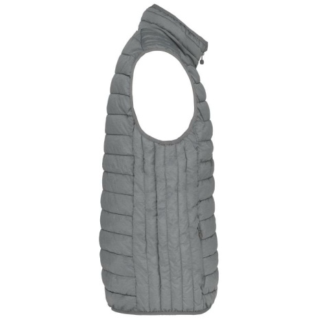 Men’s lightweight sleeveless down jacket Handig, warm en heel licht. Sterk, soepel en onderhoudsvriendelijk materiaal. Compact op te bergen in zijn tas. Buitenkant: 100% polyamide. Marl Silver: 70% polyester/ 30% polyamide. Marl Dark Silver: 70% polyamide / 30% polyester. Polyamide binnenvoering. Warm en ultralicht. Samenpersbaar in de opbergtas. 2 voorzakken met rits. Contrasterende binnenzijde: Convoy Grey voor Black, Red, Marl Dark Grey en Marl Silver; Navy voor Light Royal Blue, Mineral Green, Dark Khaki en Wine; Black voor Forest Green; Dark Khaki voor Jungle Camo. Toon-op-toon interieur: Burnt Ochre voor Burnt Ochre; Navy voor Navy; White voor White.
