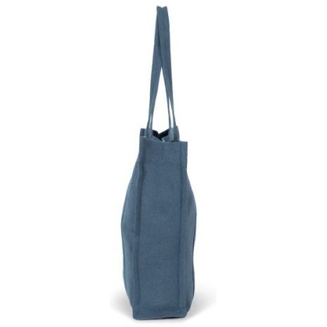 Met de hand geweven shopper van canvas Milieuvriendelijk: gemaakt van vezels van gerecycled materiaal. Met de hand genaaid volgens traditionele weeftechnieken uit Bangladesh. Dit artikel ondersteunt de economie van de families die in afgelegen dorpen in Bangladesh wonen en zet vooral vrouwen aan het werk, om zo te voorkomen dat deze dorpen leegstromen. 80% katoen / 20% polyester. Shopper gemaakt van vezels van gerecycled materiaal. De tas werd met de hand genaaid volgens traditionele weeftechnieken uit Bangladesh, ‘Tant’ genoemd. De traditionele weefstructuur geeft het canvas een unieke, ambachtelijke look. Deze tas maakt deel uit van de collectie ‘Handloom recycled project’, de vrucht van een samenwerking tussen het merk Kimood en de firma HandTouch, lid van ECOTA, een fairtradeorganisatie in Bangladesh. Dit artikel ondersteunt de economie van de families die in afgelegen dorpen in Bangladesh wonen en zet vooral vrouwen aan het werk, om zo te voorkomen dat deze dorpen leegstromen. De hengsels die over de hele tas werden genaaid, zijn gemaakt van dezelfde stof als de tas.In de binnenkant van de tas zit een etiket met meer uitleg over het project en extra personalisatieruimte voor een logo en/of boodschap.