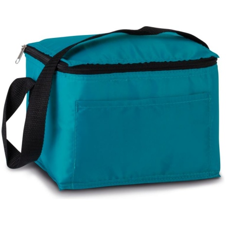 Minitas met koelvak Heel handig miniformaat met plaats voor maximaal 6 blikjes. Gemakkelijk te personaliseren dankzij een zak aan de voorkant die ook dient als extra opberging. Soepel en sterk. Koeltas van 210D polyester + wand van aluminium. Zak aan de voorkant voor eenvoudige personalisatie. Er kunnen tot 6 blikjes in.