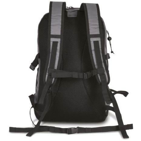 Multifunctionele rugzak Ideaal om te sporten en te hiken, sterk en ergonomisch. Met talloze accessoires, opbergingen en vakken. Elastiek voor stokken, voor meer veiligheid en comfort. Stads/sportrugzak in ripstop en polyester. Voorvak met rits + 2 hoofdcompartimenten, zijvakken in mesh, elastische koordje voor trekkingstokken, ergonomische dames/heren schouderbanden en riem, gaatje voor waterbuisje.