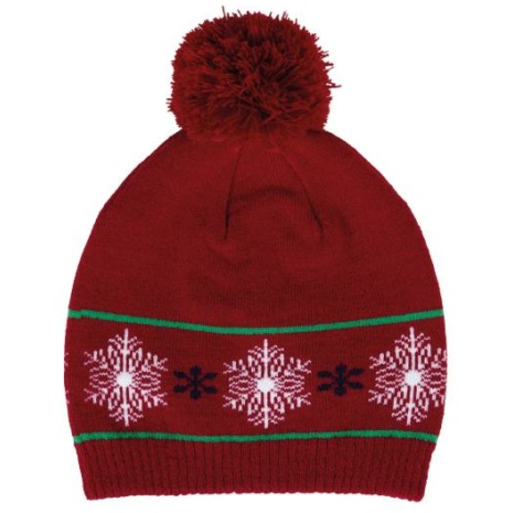Muts met kerstmotieven Zacht en comfortabel. Houdt de warmte goed vast. Fantasiemotieven en een pompon voor een trendy look. 95% acryl / 5% elastaan. Muts met pompon.