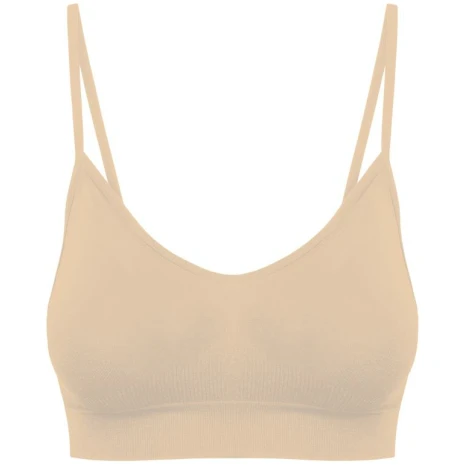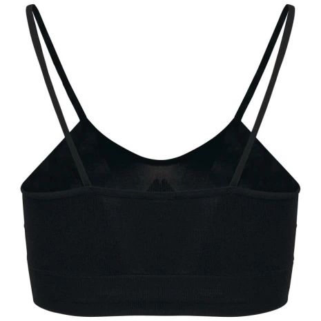 Naadloze bh Ergonomisch en naadloos. 93% polyamide / 7% elasthan. Gemaakt van 55% gerecycleerd polyamide pré-consumer. Skinny snit. Naadloos en ergonomisch weefsel voor een maximaal comfort. Afwerking met dubbele dikte onder de borst. Halsopening aan de voorkant en achterkant + schouderbandjes met biesjes Gemaakt in Italië.