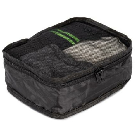 Opberghoes om bagage te organiseren – Klein formaat Sterk en scheurbestendig. Heel handig, kan worden opgevouwen en opgeborgen in een tasje. Onmisbaar om alles mooi te organiseren op reis. 100 % polyester. Opberghoes van Polyester 190 TPU Ripstop om bagage te organiseren. Ideaal voor ondergoed en accessoires.Bovenkant van mesh. Kan worden opgevouwen en opgeborgen in een handig zakje. Ring om te bevestigen aan ieder type van sluithaak. Klein formaat.