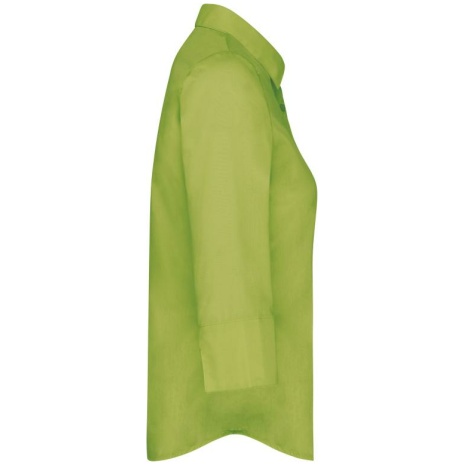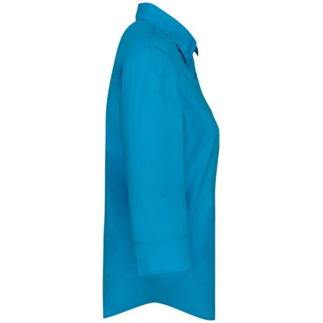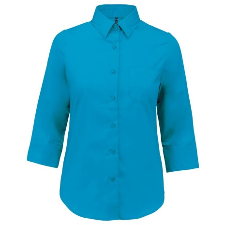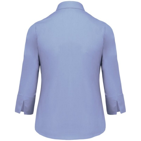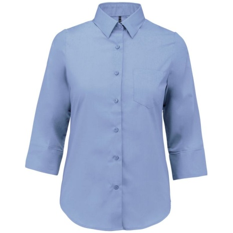 Overhemd in onderhoudsvriendelijk polykatoen-popeline 3/4-mouwen dames Gemaakt uit polykatoen, voor een gemakkelijk onderhoud. Sterk en stijlvol. Vrouwelijk model met 3/4-mouwen. 65% polyester / 35% popelinekatoen. Gemakkelijk in onderhoud (EasyCare). Kraag zonder knopen. Toon-op-toon knopen. Borstzakje links in v-vorm. 1 extra knoop. Afgerond boord aan de onderkant.