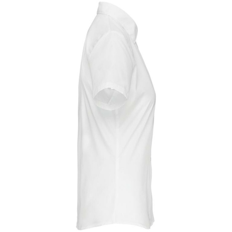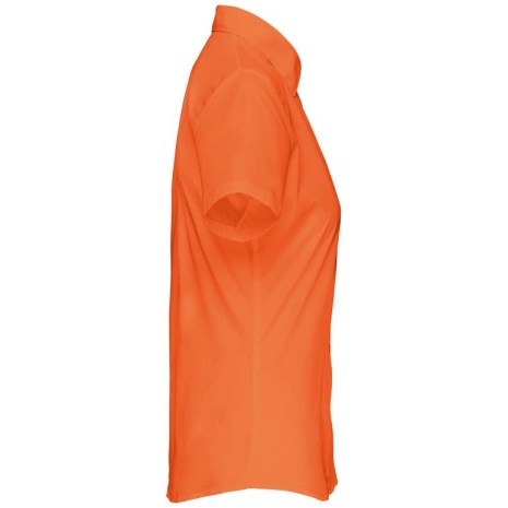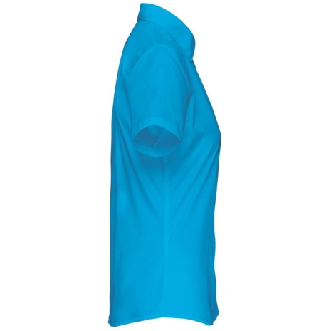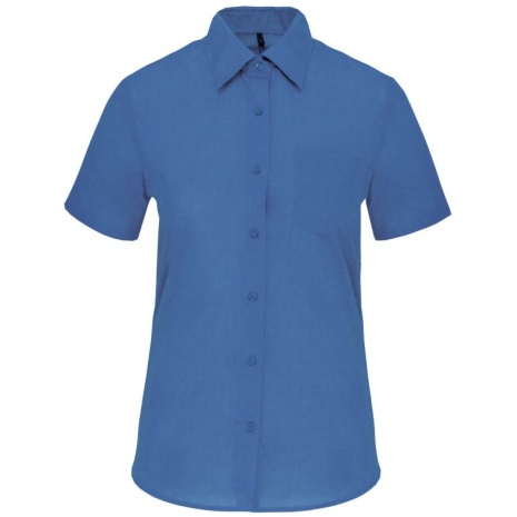 Overhemd in onderhoudsvriendelijk polykatoen-popeline korte mouwen dames Gemaakt uit polykatoen, voor een gemakkelijk onderhoud. Sterk en stijlvol. Keuze uit 23 kleuren. 65% polyester / 35% katoen. Gemakkelijk in onderhoud (Easy Care). Kraag zonder knopen. Toon op toon knopen. Borstzakje links in v-vorm. Mouwuiteinden omgezoomd. 1 extra knoop. Afgerond boord aan de onderkant.