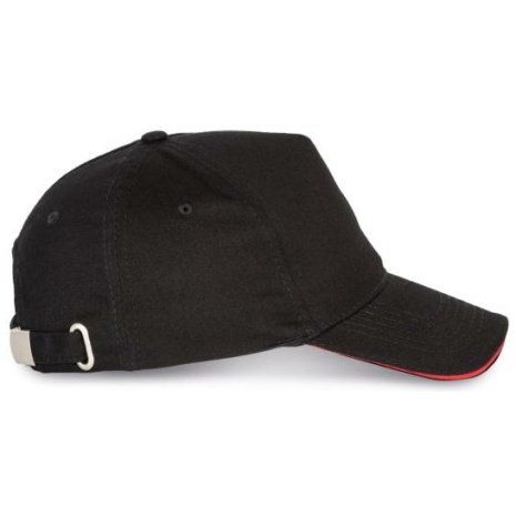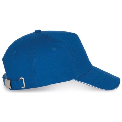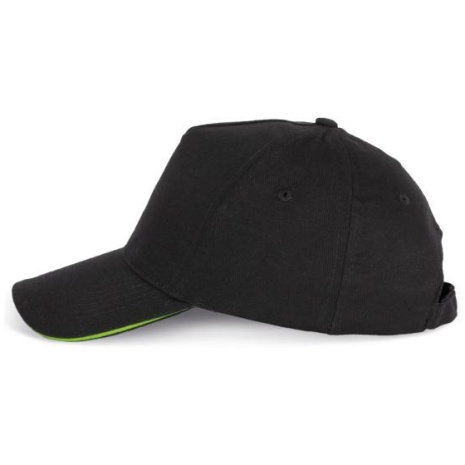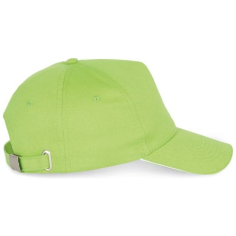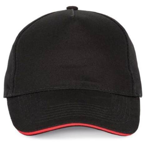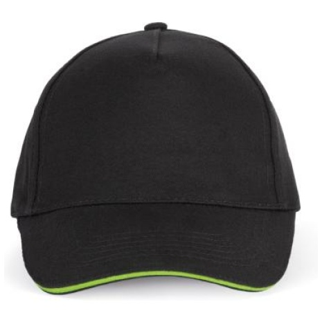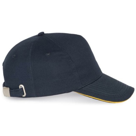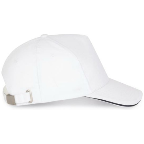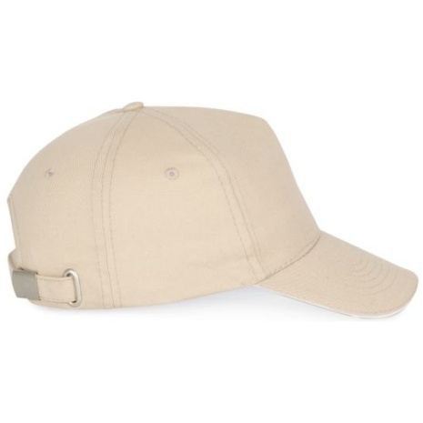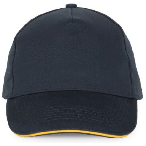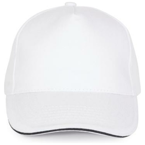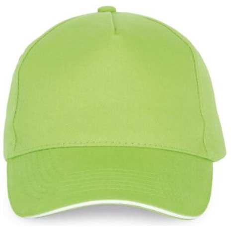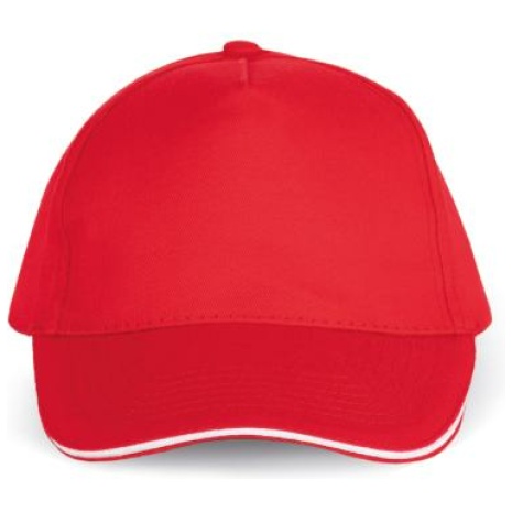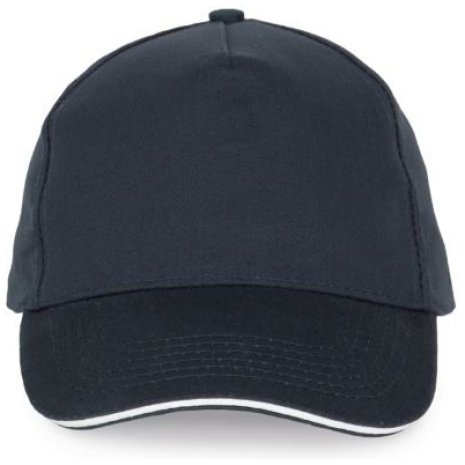 Pet Met 5 Panelen En Contrasterende Bies Keuze uit 21 kleuren, met een contrasterende sandwichklep. Geborsteld, dik twillkatoen voor meer soepelheid en zachtheid. Stevig en sterk weefsel. Zweetband met katoenen voering. 100% zwaar geborsteld sergé katoen. 5 panelen. Klep met contstrasterende bies. Katoenen zweetband. Verstelbare gesp-sluiting.