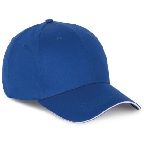Pet met contrastererende bies – 6 panelen 100% katoen. Pet met 6 panelen en contrasterende bies. Verstelbare sluiting met metalen gesp en zelfblokkerende lus.