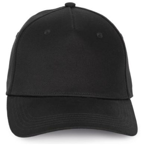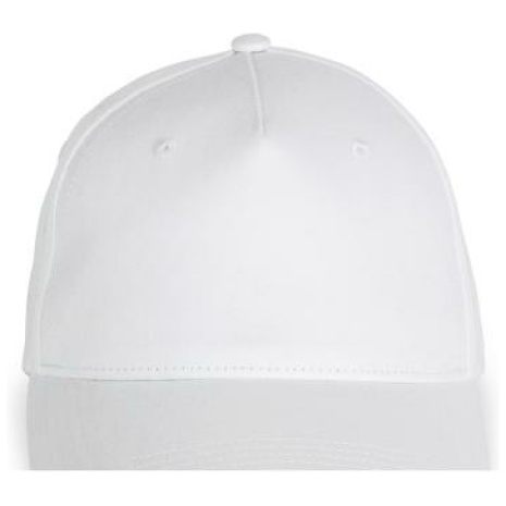 Pet van gerecycled katoen – 5 panelen 100% katoen. Pet met 5 panelen bestaande uit 60% gerecycled katoen pré-consumer en 40% zuiver katoen. Verstelbare sluiting met metalen gesp.