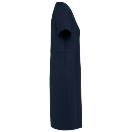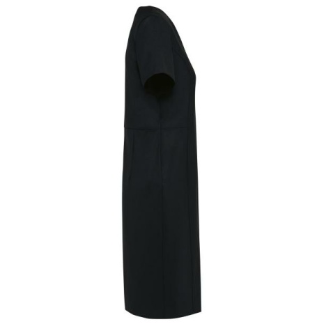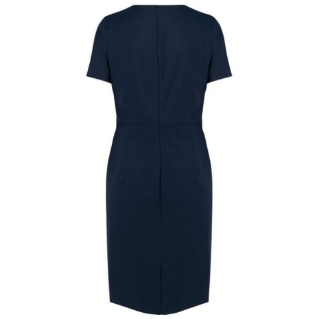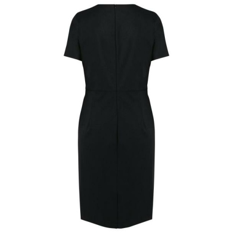 Rechte jurk Een elegante en getailleerde snit. Verzorgde afwerkingen voor een sobere klasse. Een hoogwaardige kwaliteit en een groot comfort. 50% polyester / 23% viscose / 22% wol / 5% elasthan. Voering in 100% stretchpolyester op enkel het lichaam. Prinsessenlijn met inzetstuk met biesstiksel dat de naad afplat en verstevigt. V-hals met gevoerde afwerking binnenin. Blind rits achteraan. 2 tailleplooien achteraan. Ruimtesplit onderaan de rug. Losse voering met split. Geen merklabel, maar enkel een maatlabel voor eenvoudige personalisatie.