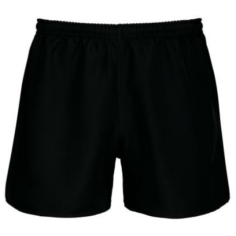 Rugbyshort uniseks. 100% polyester en verstevigde naden : heel sterk.