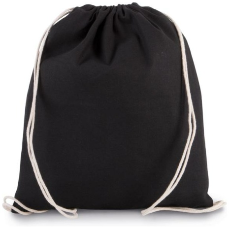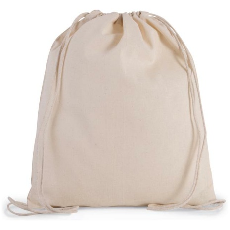 Rugzakje van biokatoen met koordjes. 100% biologisch katoen OCS100-label, afgeleverd door Ecocert Greenlife.