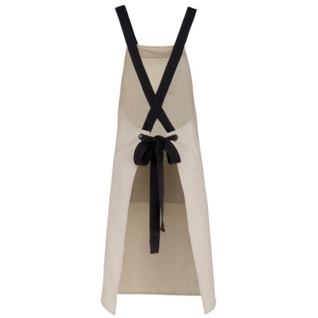 Schort van biologisch katoen. Afwerking met heel sterk canvas en riemen van keperkatoen.