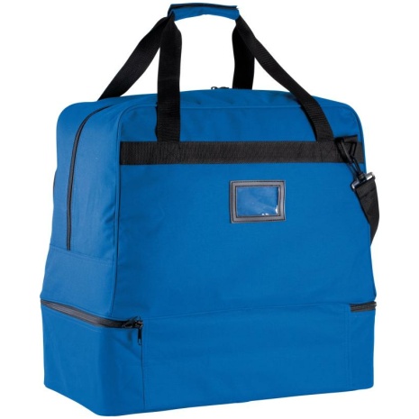 SENIOR’ model / 90 liter Afneembare harde bodem. Ritszak op de voorkant voor eenvoudige personalisatie. Afneembare schouderband en kaarthouder. Polyester 600D. 90 liter inhoud. Verstevigde bodem in polypropylene met voetjes in plastic. Voorzak met rits om de personalisatie te vereenvoudigen. Kaarthouder. Afneembare schouderband met patch in silicone.